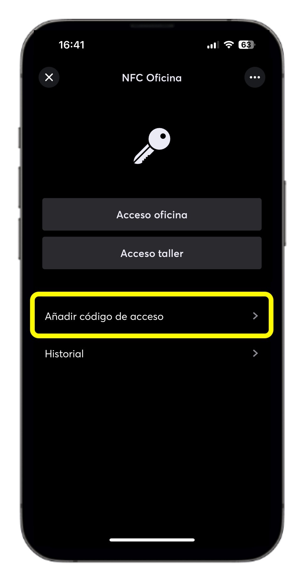 - Seleccionar el teclado NFC al que se quiere añadir el código.