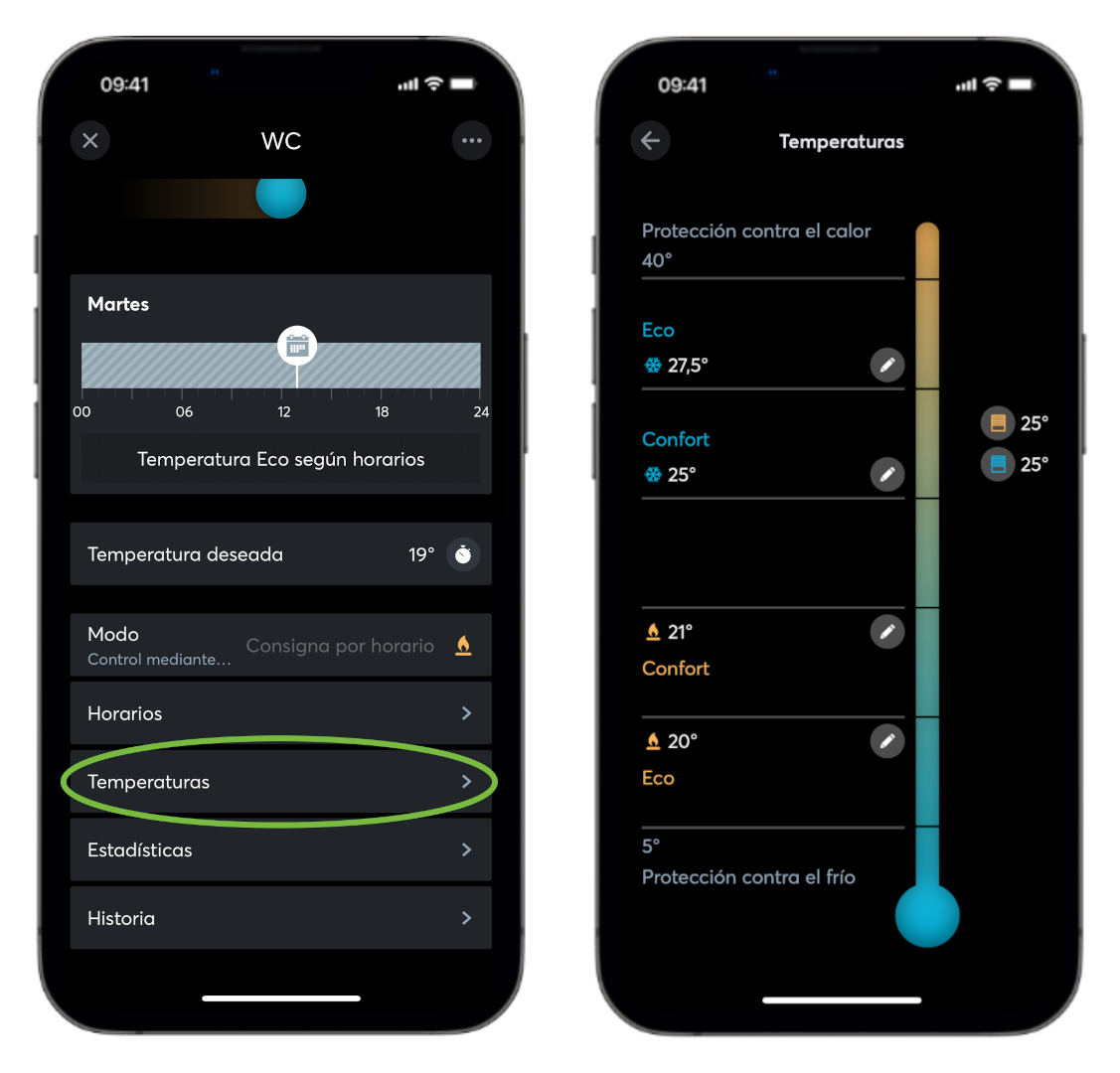 Configuración de temperaturas