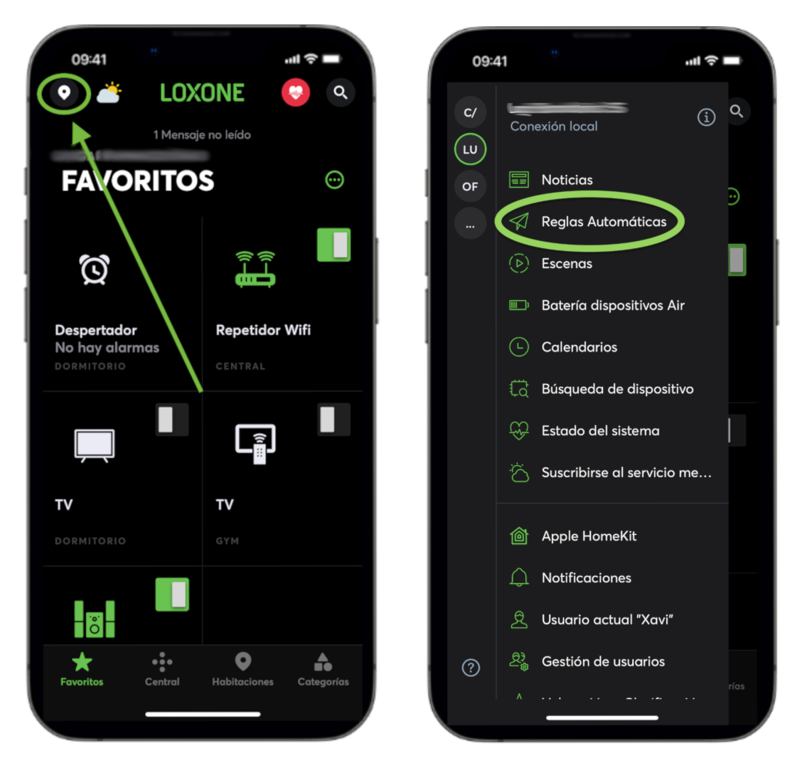 La opción situada en la parte superior izquierda del menú principal de la app permite crear una serie de acciones personalizadas adaptadas a cada usuario. Está diseñada para no requerir herramientas de programación externas y facilitar una automatización sencilla a nivel de usuario.